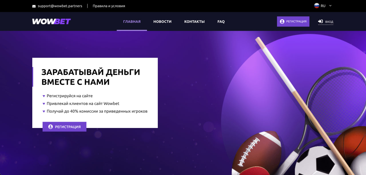 WowBet Partners — партнёрская программа бренда Wowbet, который оказывает услуги онлайн-казино и ставок на спорт. Работает преимущественно с трафиком Ближнего Востока. Предлагают форму сотрудничества по RevShare 25 — 50 %.