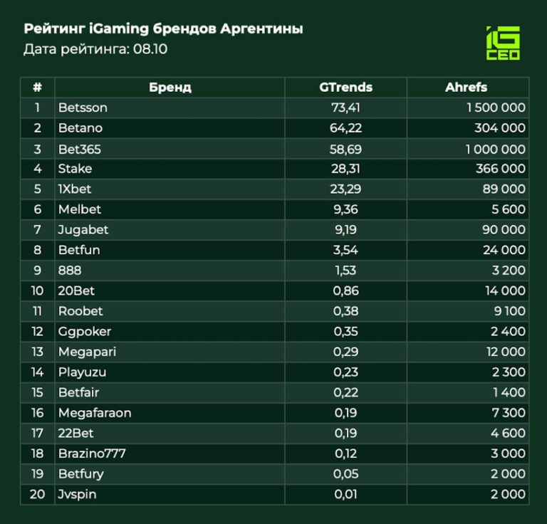 За последние 30 дней было сделано более 3 млн. запросов по топ 20 iGaming брендам Аргентины.