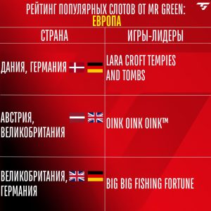 Обзор популярных слотов в странах Европы на основе данных Mr Green. Узнайте о трендах и предпочтениях игроков в разных регионах.