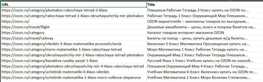 Пример задачи: собрали групповой отчет по страницам конкурентов и надо понять, что там за темы, или ищем ссылочных доноров и хотим узнать тематики. Так вот пару лет назад придумал просто собирать данные из выдачи для быстрого анализа. Интересно, что до сих пор такой инструмент нигде не встречался, где можно отдать список урлов и получить title из выдачи.