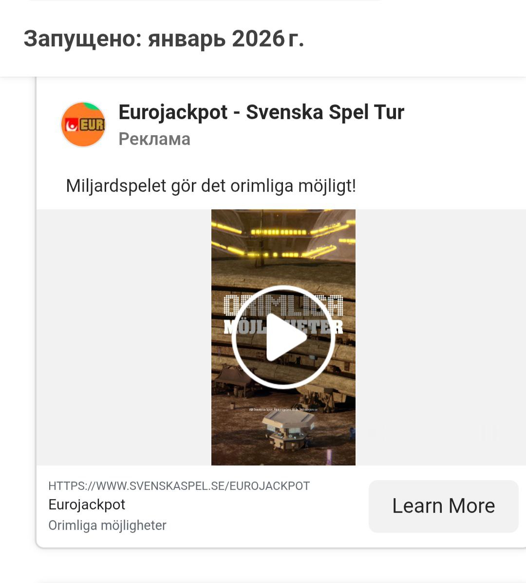 - Крео якобы от официальной лотереи Eurojackpot (скрин 4). Вайт пейдж, что характерно, действительно «вайт» (скрин 5). Получается, FB и в самом деле можно клоачить хоть дохлым голубем.