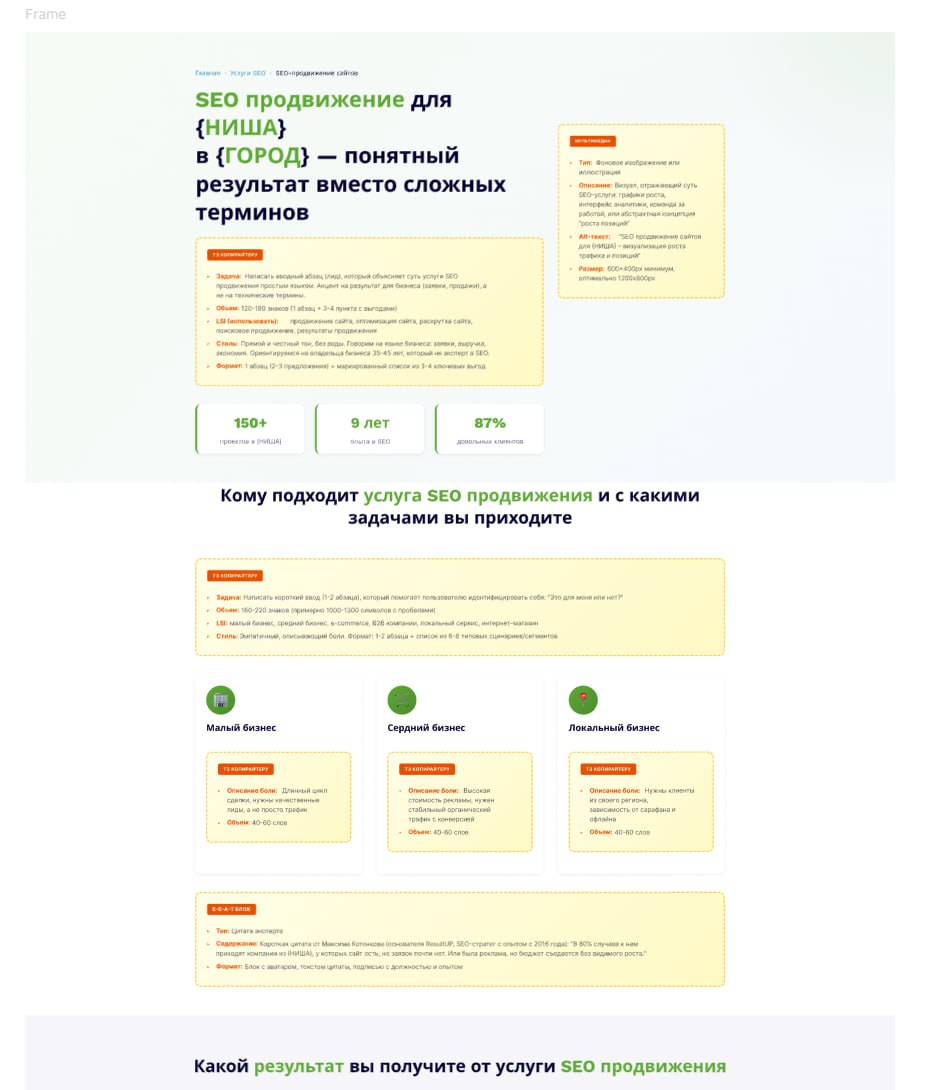 Рассказывал, как делать прототипы-шаблоны для масштабирования SEO страниц в этом видео https://www.youtube.com/watch?v=1bKnUY2Vu50