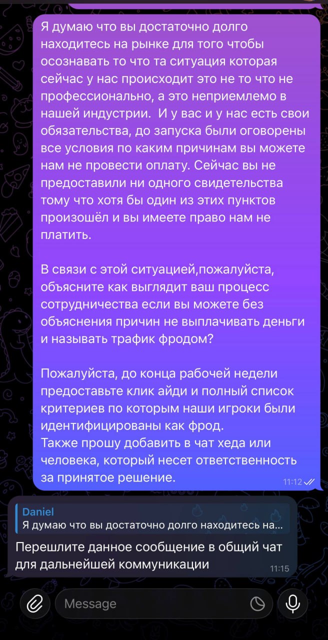 Это какая-то новая схема заработка, о которой я не знаю? Впервые вижу, чтобы сетка даже не старалась доказывать правоту. То есть можно просто сказать «Извини, но нет» и уйти в закат с деньгами и трафиком.