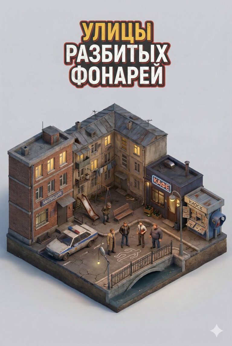 First, analyze the core world-building of [НАЗВАНИЕ СЕРИАЛА]: identify its iconic buildings, signature locations, atmosphere, props, character silhouettes, and color palette. Mentally plan the spatial arrangement and lighting of a 3D miniature isometric scene before rendering, ensuring the final output uses a 2:3 aspect ratio. Then create a 45° top-down isometric miniature 3D cartoon city block built entirely from the show’s recognizable architecture and settings, with each building and each character figure used only once, with no repeats and arranged in a dense but readable layout. All buildings and character figurines must stand together on a single base-plate platform that unifies the entire 3D miniature. Render with soft PBR materials, gentle realistic lighting, clean shadows, and a minimal solid-color background. At the top-center, place the show’s title in its authentic poster-style typography.