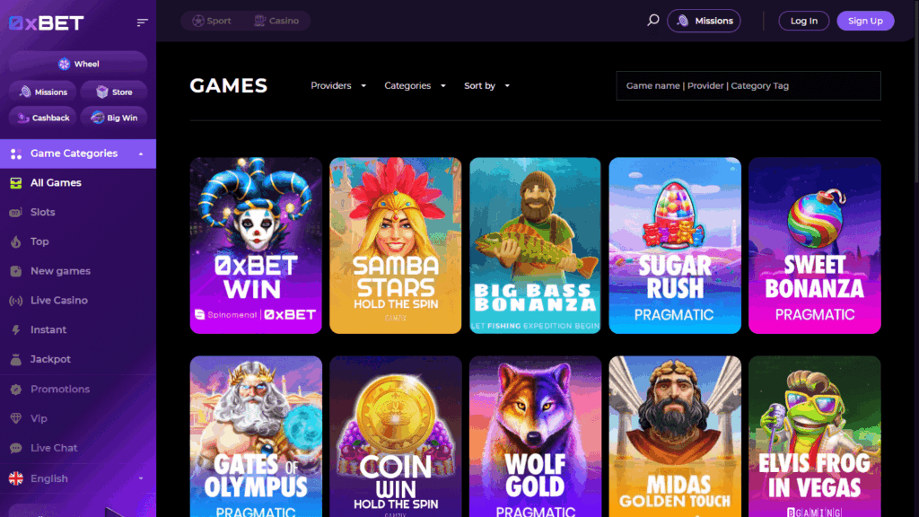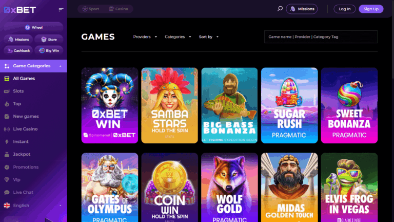 0x.bet относится к категории небольших международных площадок – ограниченный список стран допускает регистрацию, а лицензия Кюрасао лимитирует географию игры. Несмотря на это, площадка успешно конкурирует по числу игровых провайдеров: здесь собрано около сотни студий – от NetEnt и Pragmatic Play до Play’n GO и Evolution с ежедневными лайв-играми. Можно быстро фильтровать контент по производителю или названию, мгновенно найти востребованный слот, настольную или моментальную игру, сделать ставку на спорт и киберспорт.