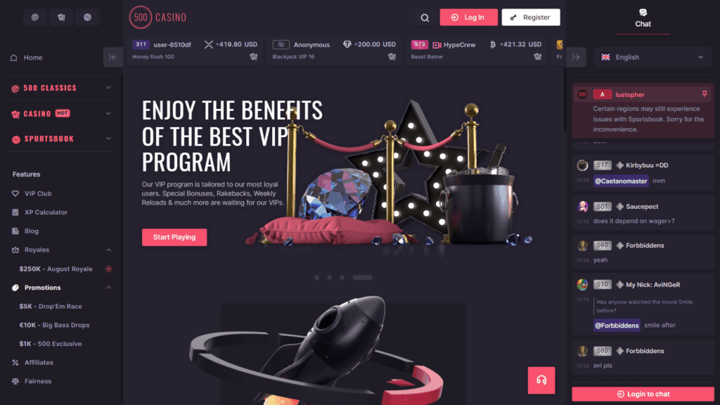500 Casino – международная площадка для азартных игр, специализирующаяся на криптовалютных платежах, с широкой коллекцией игр от известных провайдеров и быстрым процессом регистрации.