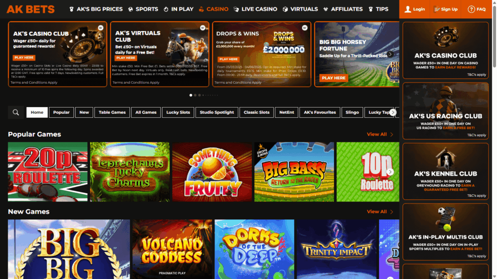 AK BETS – онлайн-казино и букмекер для резидентов Великобритании, специализирующийся на спортивных ставках с широкой акцентуацией на легальность и лицензирование. В компании совмещены ставки и казино, однако основное внимание уделяется именно спортивным продуктам, что видно по структуре сайта и приоритету сервисов.