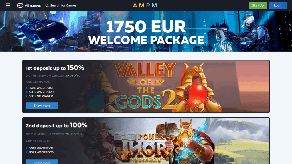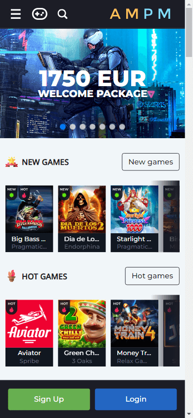 Игровое портфолио AMPM впечатляет – пользователи получают доступ к автоматам, настольным и карточным играм, лотереям, виртуальному спорту, лайв-играм и даже краш-играм от 75 производителей, включая NetEnt, Evolution, Play’n GO, Pragmatic Play. Для новичков действует приветственный пакет, а поклонников турниров ждут регулярные соревнования по слотам и программа лояльности.