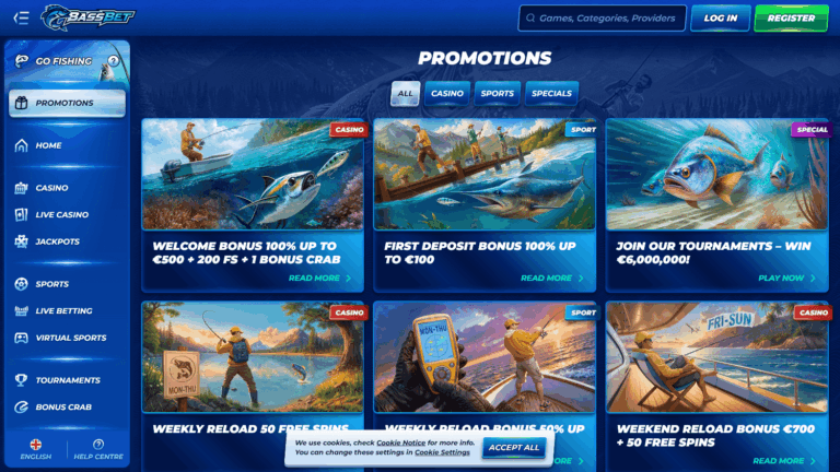 Коллекция BassBet включает свыше 100 провайдеров и тысячи игровых автоматов на любой вкус: популярные видеослоты, Megaways, прогрессивные джекпоты, бонусные игры, карточные и настольные дисциплины, рулетку, баккару, кено, лотереи, краш-игры. Доступен масштабный Live-казино раздел с профессиональными дилерами и возможностью переключения между различными версиями популярных игр. Специальный раздел букмекерских ставок позволяет выбирать события на спорт, киберспорт и виртуальные соревнования.