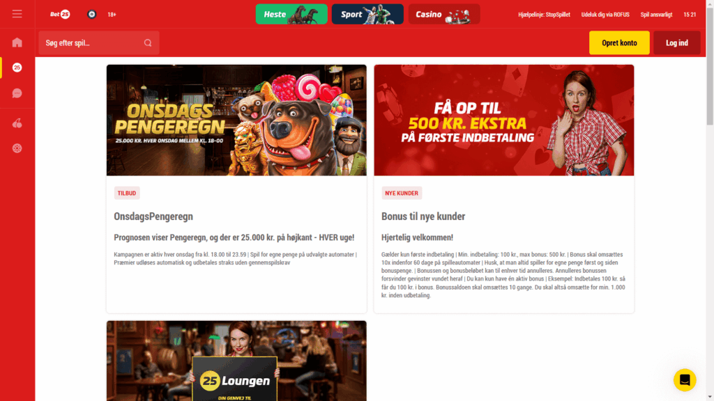Платформа принадлежит компании 25syv A/S и работает по датской лицензии Spillemyndigheden, что подтверждает легальность работы и строгий контроль со стороны регулятора. Казино рассчитано на датскую аудиторию и не принимает игроков из других стран. Акцент на прозрачных условиях заметен уже при первом знакомстве: действующие правила не содержат скрытых ограничений или противоречий, которые можно было бы использовать против интересов игроков. Сайт выдержан в минималистичном стиле ? ничего лишнего, только необходимые функции для ставок на спорт и игры в казино.