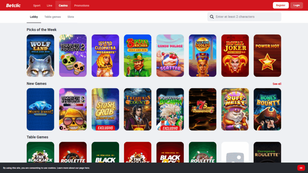 Казино выделяется набором положительных характеристик: широкой линейкой поставщиков игр и прозрачной политикой в отношении выплат. Однако основная специализация Betclic – спортивные ставки, поэтому доля казино-контента уступает беттингу по приоритету. Привлекательные промо-акции и бонусы отсутствуют, что отличает площадку от конкурентов, ориентированных на бонус-хантинг.