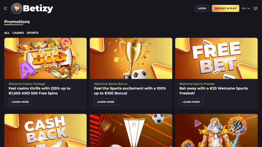 Betizy – онлайн-казино и букмекер, сочетающее широкую коллекцию игр, привлекательные бонусные предложения и поддержку ставок на спорт, включая киберспорт. Площадка лицензирована на Мальте и ориентирована на пользователей, ценящих разнообразие, быструю регистрацию и 24/7 поддержку.