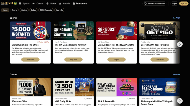 Платформа работает под управлением Entain Operations Limited и располагает лицензиями сразу в нескольких штатах: Нью-Джерси, Пенсильвания, Мичиган и Западная Вирджиния. Такое регулирование обеспечивает высокий контроль за деятельностью казино и делает BetMGM заметным игроком на американском рынке онлайн-гемблинга. К пользе клиента – очень большой выбор слотов и настольных игр от 89 провайдеров, включая NetEnt, Playtech, Pragmatic Play и Evolution Gaming. Присутствуют как классические автоматы, так и лайв-казино, видео покер, бинго, кено и скретч-карты. У BetMGM есть собственная покерная платформа, что существенно выгодно выделяет его среди конкурентов.