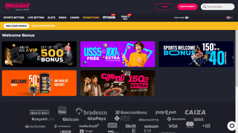 Betmotion – онлайн-казино и платформа для ставок на спорт, ориентированная на игроков из Бразилии и Латинской Америки, с широкой линейкой игр, поддержкой криптовалюты и круглосуточной поддержкой. Площадка сочетает казино и букмекерский функционал с удобной системой платежей, включая Bitcoin и национальные банки, что выгодно отличает её среди конкурентов.