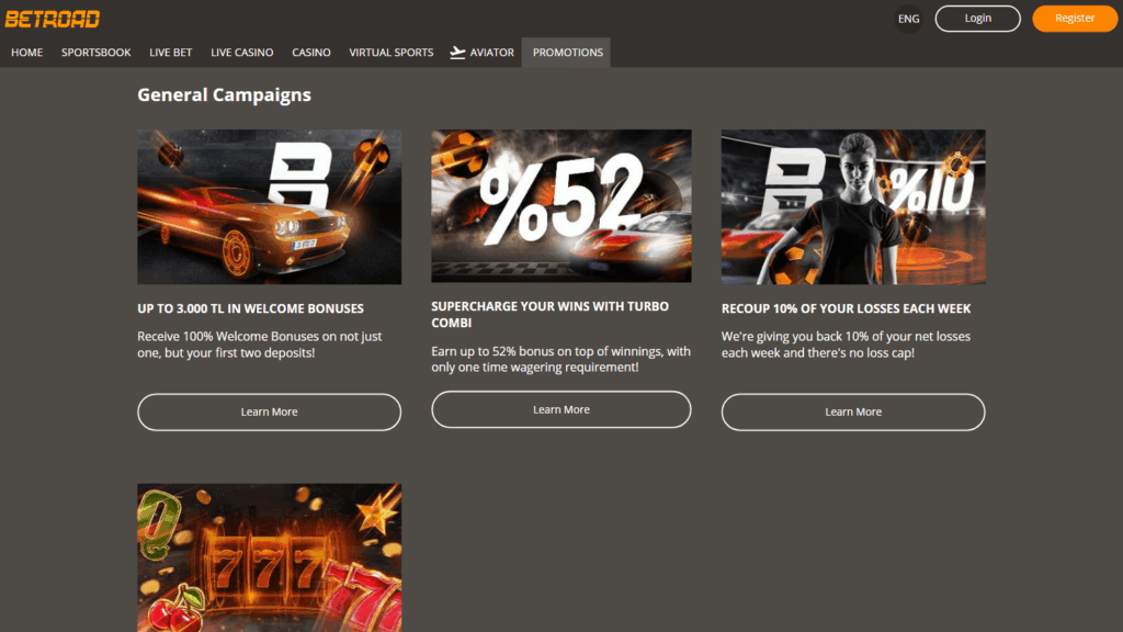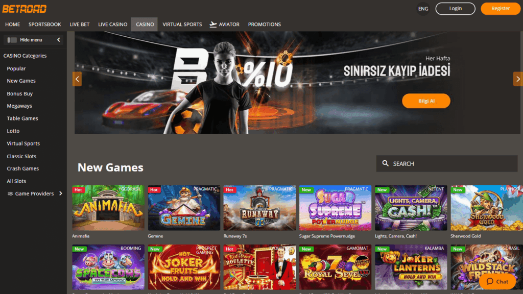 Betroad предлагает клиентам более 45 провайдеров игровых автоматов, в том числе NetEnt, Play’n GO, Evolution Gaming, Pragmatic Play и других. Обилие контента включает не только классические слоты, но и широкий спектр столов с живыми дилерами, видеопокер, бинго, кено, скретч-карты, виртуальные и киберспортивные ставки. Для любителей ставок доступен интегрированный букмекерский раздел. Такой ассортимент заметно выделяет платформу на фоне других небольших проектов, особенно в границах турецкого рынка.