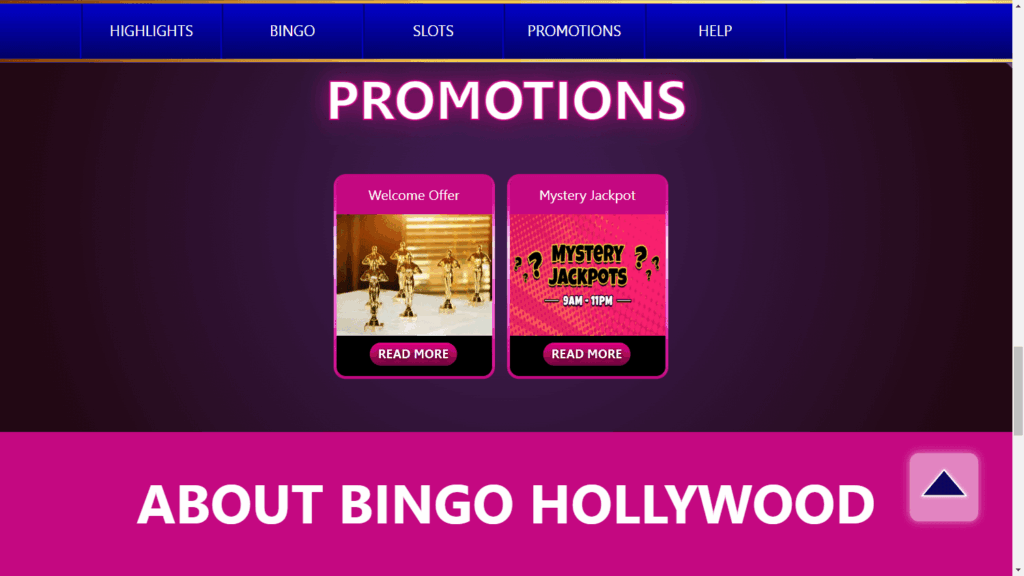 Bingo Hollywood – онлайн-казино, ориентированное на игроков из Великобритании, специализирующееся на бинго и слот-играх, работает на лицензии UKGC и предоставляет ограниченный выбор игровых жанров.