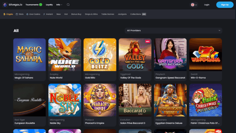 Ключевая особенность Bitvegas.io – более 9000 игр от 117 признанных провайдеров (NetEnt, Evolution, Pragmatic Play, Playtech, Microgaming, Yggdrasil и другие). Лобби удобное, сортировка по провайдерам и встроенный поиск помогают быстро находить нужные тайтлы или фильтровать коллекцию. Казино уделяет внимание live-играм, где доступны комнаты с реальными дилерами и современными HD-трансляциями. Кроме классических слотов, представлены видеопокер, рулетка, блэкджек, баккара, кено, скретч-карты, джекпот-игры, стихийные игры вроде Crash, а также виртуальный спорт.