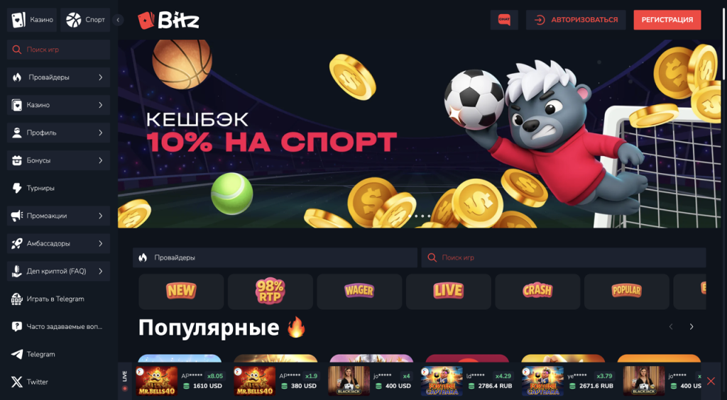 Bitz отличается высокой скоростью обновления игр, широким выбором платёжных опций и поддержкой современных криптовалют. Конкурентное преимущество площадки – быстрые выплаты, поторые положительно сказываются на пользовательском опыте игрока. Bitz подходит игрокам, которые ценят честные правила, оперативную поддержку, а также разнообразие развлечений на одной платформе.