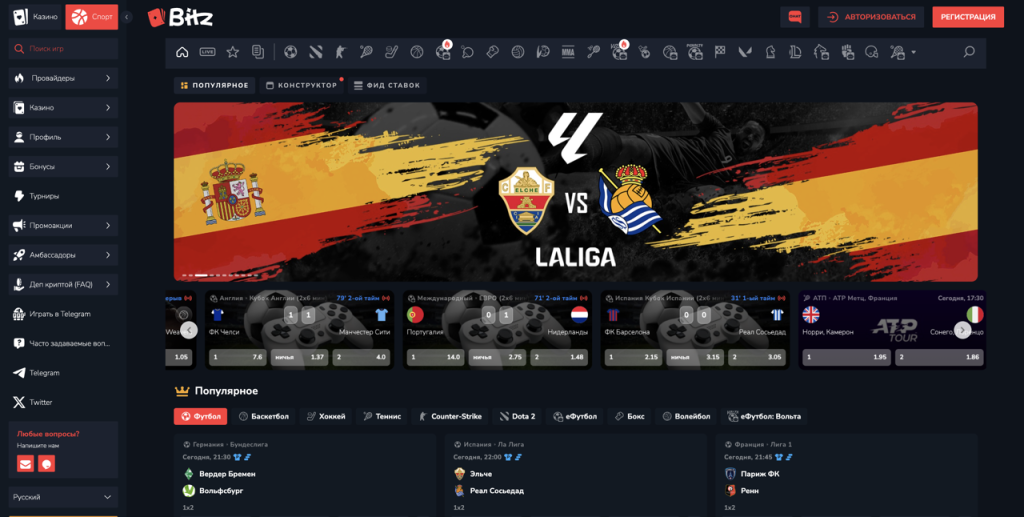 Bitz – современное криптоказино, которое совмещает площадку азартных игр и букмекерскую платформу. Удобный доступ с компьютера и мобильного приложения делает игру максимально доступной. Сайт поддерживает как криптовалюты, так и фиатные средства — всё, чтобы игроки со всего мира чувствовали свободу выбора и комфорт на всех этапах игры.