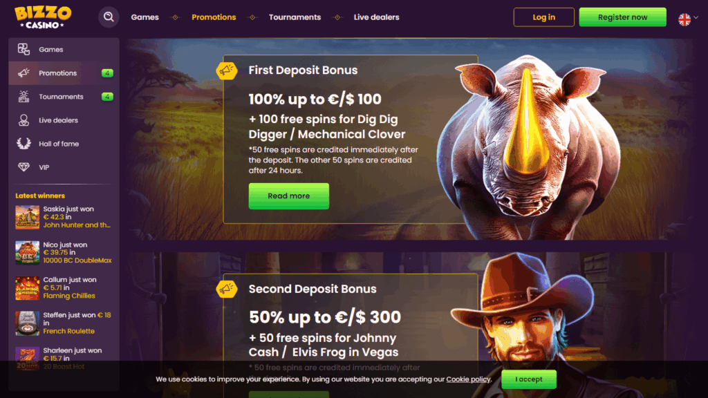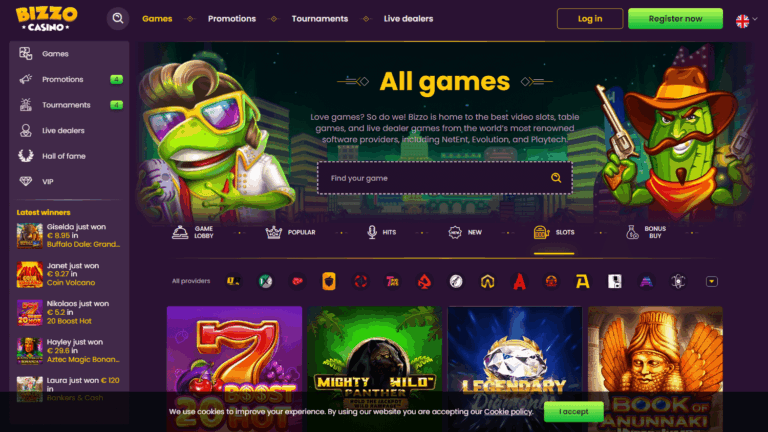 Bizzo Casino – международное онлайн-казино средних размеров, выделяющееся широким выбором провайдеров, поддержкой множества валют и языков, а также наличием современной мобильной версии и 24/7 чата. Здесь можно оценить сильную игровую библиотеку, гибкие лимиты и возможность игры с живыми дилерами.