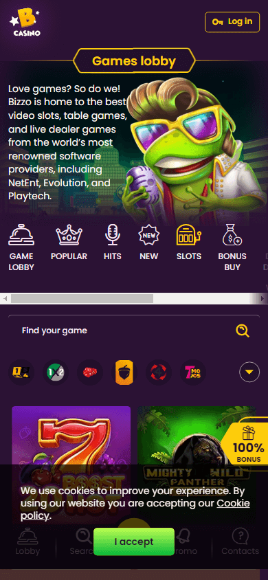 Игровая библиотека Bizzo – одна из самых масштабных среди казинов среднего сегмента: представлены топовые бренды вроде NetEnt, Nolimit City, Yggdrasil, Pragmatic Play, Playtech и Red Tiger. Live-казино организовано на базе Evolution и Ezugi, слоты можно сортировать по провайдеру, RTP и новизне. Поддерживается мобильная игра – загрузка сразу с браузера смартфона или планшета без установки приложений.