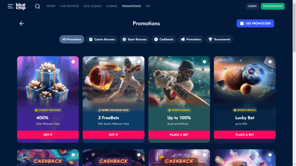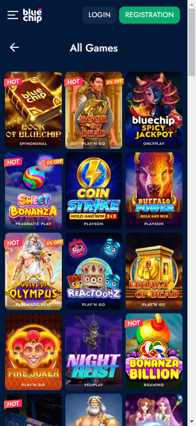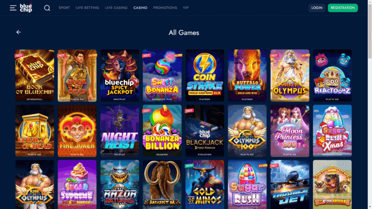 BlueChip Casino выгодно выделяется сочетанием игрового портфеля и прозрачных условий. В казино доступны слоты, настольные игры, live-дилеры, ставки на спорт и киберспорт, видеопокер, бинго, скретч-карты и шоу-игры от 124 поставщиков, включая такие имена, как Play’n GO, NetEnt, Blueprint Gaming, Microgaming, Red Tiger Gaming, Playtech и Pragmatic Play. Для любителей азартных развлечений предусмотрен интуитивный поиск по провайдерам и жанрам, а также удобная навигация по каталогу.
