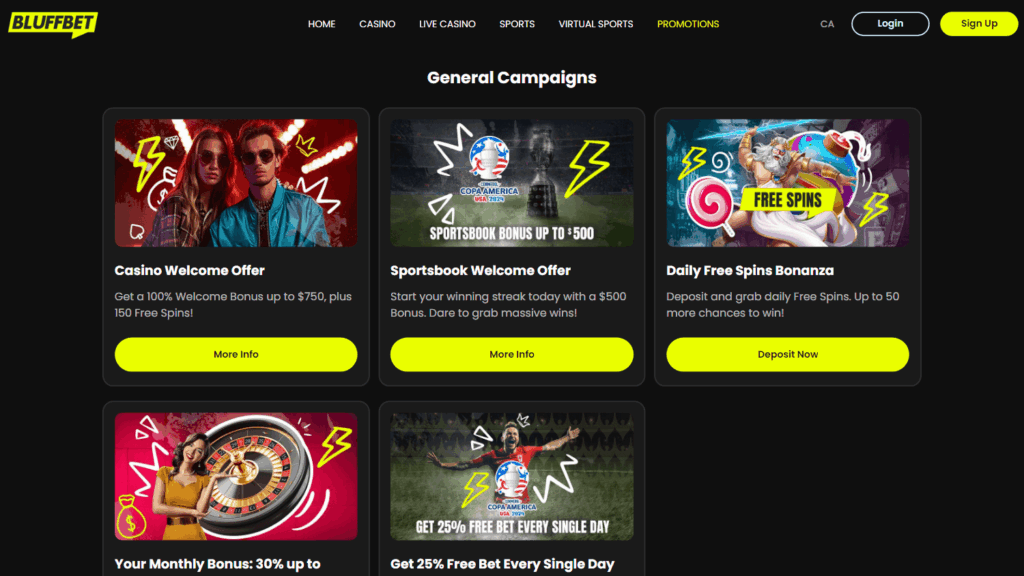Bluffbet подойдёт игрокам, которым важны быстрые выплаты, разнообразный выбор игр и широкий спектр платёжных систем. Компания демонстрирует прозрачную работу с пользователями, оперативную поддержку и удобные условия для игры на реальные деньги.