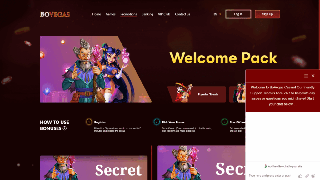 BoVegas – международное онлайн-казино с акцентом на безопасность, прозрачные выплаты и удобные условия для игроков разных стран. Здесь представлены игровые автоматы и настольные игры от RealTime Gaming и Visionary iGaming, встроена поддержка криптовалют, а команда поддержки работает круглосуточно через чат, электронную почту и телефон.