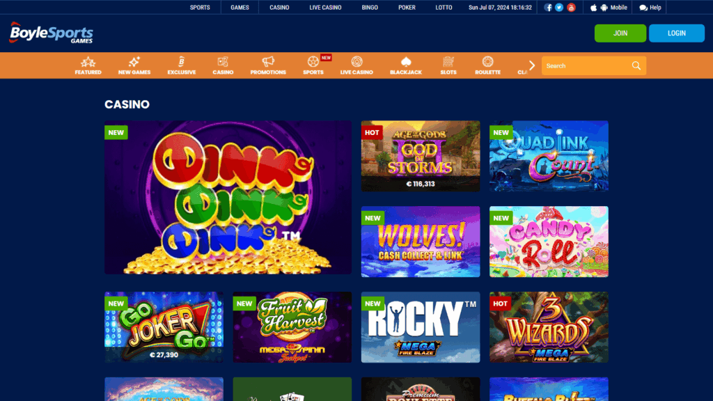 Платформа собрала внушительное портфолио: более 5000 игровых автоматов, сотни настольных и лайв-игр, бинго и лотереи, ставки на спорт и киберспорт. ПО поставляют 50 известных провайдеров, включая Playtech, Play’n GO, Evolution и Pragmatic Play. Для желающих попробовать новые форматы доступны современные crash-игры, живые лотереи и шоу, а любители классики найдут отдельные лобби для блэкджека, рулетки, покера и бинго.