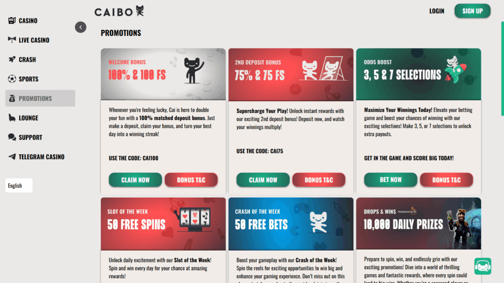 Caibo – онлайн-казино, специализирующееся на криптовалютах, с широким выбором игр и поддержкой круглосуточного чата. Оператор работает под двумя лицензиями (Кюрасао, Анжуан), принадлежит MIBS N.V. и ориентирован преимущественно на международную аудиторию.