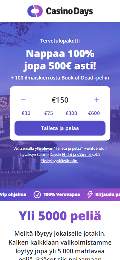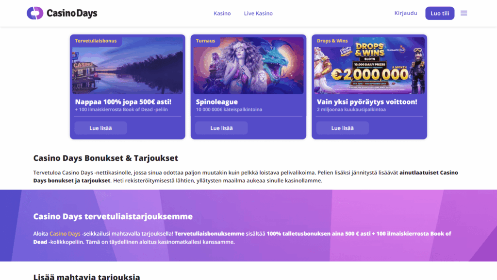 Casino Days – онлайн-казино, отличающееся масштабом и многообразием. Платформа предлагает клиентам более 3000 игр от 112 провайдеров, возможность использовать традиционные валюты или криптовалюты, а также круглосуточную поддержку клиентов. Казино управляется компанией White Star B.V., лицензировано на Кюрасао, в Онтарио и Эстонии, имеет огромный финансовый оборот и тщательно проверенную программу безопасности.
