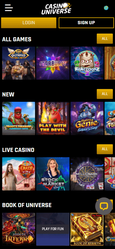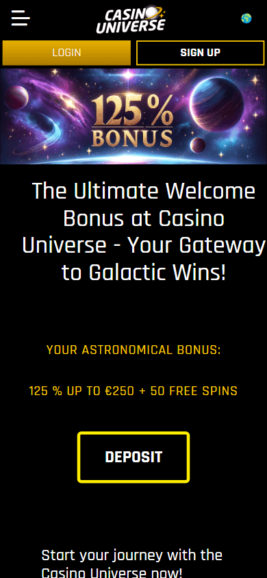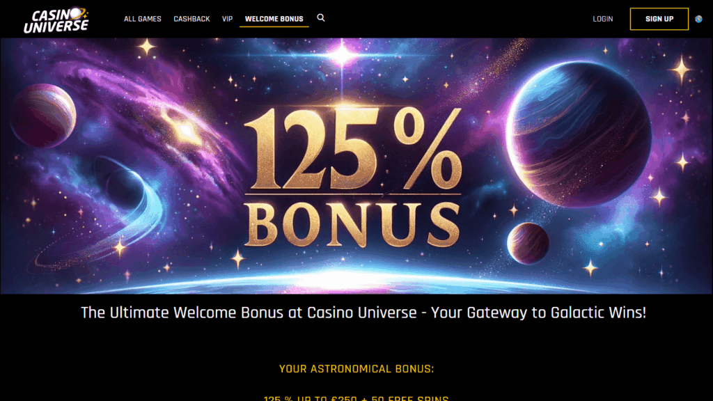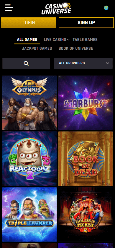 Casino Universe – онлайн-казино средних размеров, лицензированное в Мальте и принадлежащее N1 Interactive Ltd, главные особенности которого – широкий выбор игр от ведущих поставщиков, множество способов оплаты и мобильная оптимизация.
