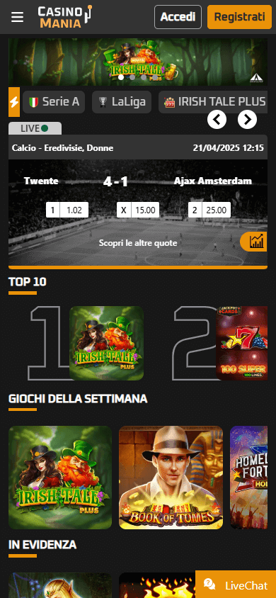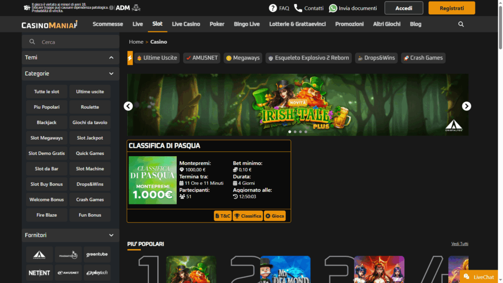 CasinoMania – онлайн-казино и букмекерский сервис, ориентированный на пользователей с итальянским налоговым кодом, с акцентом на честность условий, надежность выплат и поддержку популярных способов оплаты, включая PayPal.