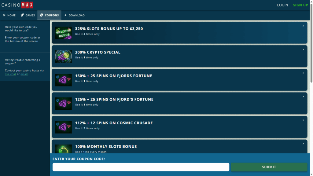 CasinoMax – онлайн-казино, работающее с 2017 года, содержащее минималистичный сайт, удобную навигацию и поддерживающее оплату в биткоинах, а также классическими банковскими методами. Казино выделяется высоким уровнем прозрачности условий, лояльным отношением к игрокам и профессиональной поддержкой 24/7.
