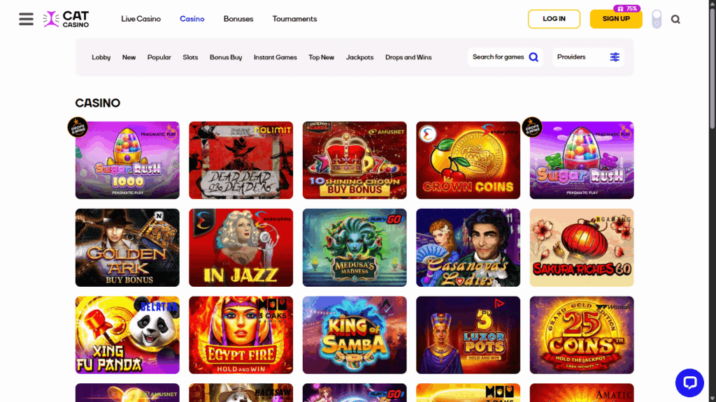 Ключевым преимуществом CatCasino выступает внушительная коллекция игр. Здесь собраны слоты, рулетка, блэкджек, видеопокер, бинго, кено, лотереи, краш-игры, лайв-дилеры и шоу от 57 лицензированных провайдеров. Игроки отмечают наличие популярных провайдеров, включая NetEnt, Play’n GO, Microgaming, Evolution Gaming, Pragmatic Play и Red Tiger, а также быструю навигацию по лобби с детализированным поиском. Для удобства доступны мобильная версия и поддержка нескольких языков.