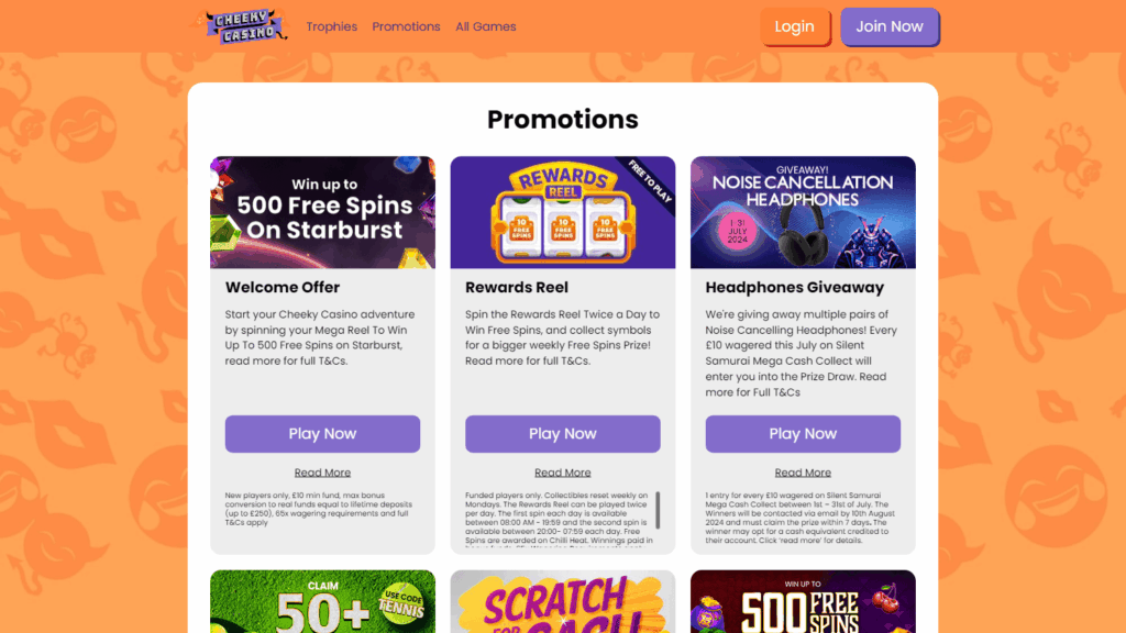 В казино действует приветственная акция: первый депозит дает шанс бесплатно прокрутить «Mega Reel», где можно выиграть бонусы, включая фриспины. Для постоянных пользователей регулярно обновляются акции и дополнительные награды, что ценят любители бонусов. Навигация проста, страницы легко адаптируются под мобильные устройства, а служба поддержки отвечает по будням по электронной почте и по телефону. Однако следует учесть отсутствие фильтрации по провайдерам в лобби и отсутствие чата для мгновенной связи. Для пользователей из ряда стран доступ к Cheeky Casino закрыт, поэтому важно проверить список ограниченных территорий.