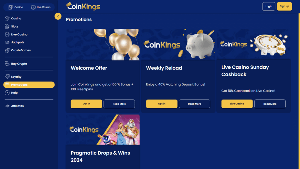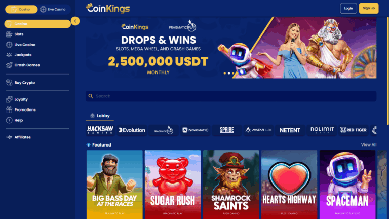 CoinKings – онлайн-казино, ориентированное на игроков, предпочитающих современные платежные методы и широкий выбор игр от ведущих провайдеров, с акцентом на честность и надежную поддержку.