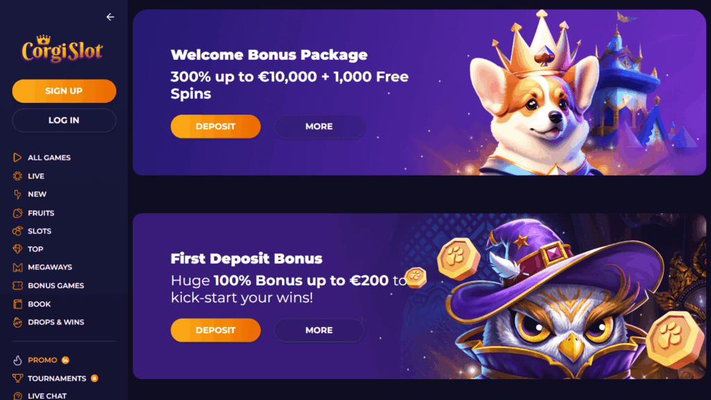 CorgiSlot – онлайн-казино, ориентированное на пользователей, которым важны разнообразие слотов, признанные провайдеры игр, современные фильтры поиска и лицензии Curacao и Anjouan. Платформа предлагает гибкий выбор платёжных систем, поддержку множества языков, а также автоматический перевод для чатов, что делает процесс игры и общения доступным для широкого круга игроков.