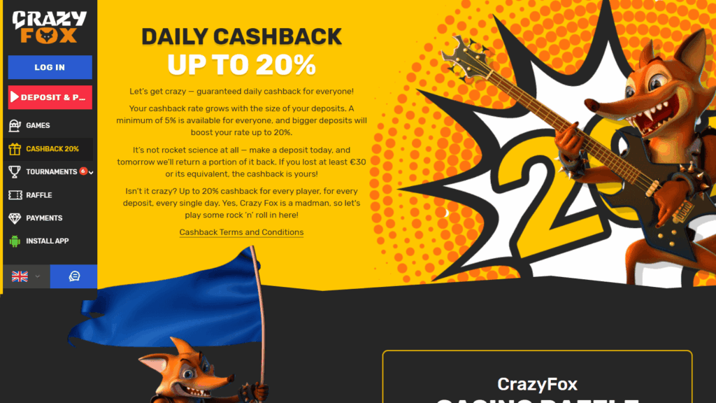 Crazy Fox – онлайн-казино с международной лицензией, специализирующееся на широком выборе игр и быстрых выплатах при поддержке N1 Interactive Ltd. Основные черты – мгновенная регистрация, поддержка множества языков, надежная 24/7 служба поддержки и солидное количество провайдеров.