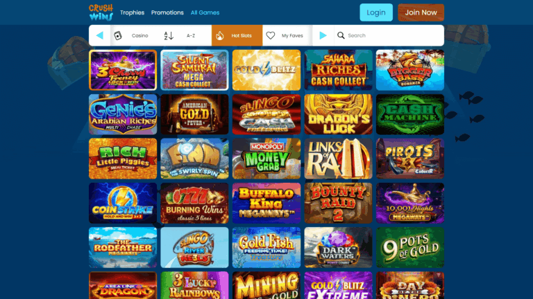 Ассортимент игр у Crush Wins Casino впечатляет: более восьмидесяти провайдеров, множество слотов и богатый каталог развлечений – от живых шоу до классических настольных игр и мгновенных лотерей. Среди провайдеров есть Evolution Gaming, Play’n GO, Yggdrasil, Blueprint, ELK Studios, Playson, что делает выбор особенно привлекательным для разных категорий пользователей. Также доступны мобильные версии почти всех игровых автоматов и полноценная мобильная версия сайта без необходимости скачивать отдельное приложение – оптимальный вариант для игроков, которые ценят удобство.