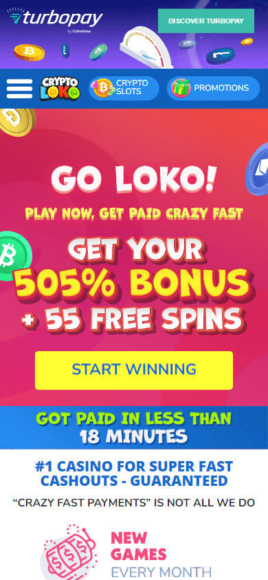Crypto Loko – онлайн-казино, ориентированное на криптовалютные транзакции, с круглосуточным чатом поддержки и современным интерфейсом, рассчитанное на игроков старше 21 года. Казино привлекает внимание широкой линейкой слотов, настольных игр и видеопокера от двух провайдеров – Realtime Gaming и SpinLogic Gaming, а также лояльной бонусной политикой и гибкой программой поощрения для постоянных пользователей. Среди особенностей – отсутствие live-игр и поддержка только онлайн-форматов ставок и развлечений.