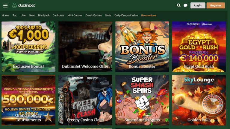 Dublinbet – онлайн-казино средних размеров с лицензией Anjouan Gaming, специализирующееся на live-играх и широком выборе развлечений от более 50 мировых провайдеров. Этот оператор отличается ориентированностью на игроков, предпочитающих как игровые автоматы, так и карточные игры с живыми дилерами, наряду с достойным выбором платёжных инструментов и адаптивным сайтом для мобильных устройств.
