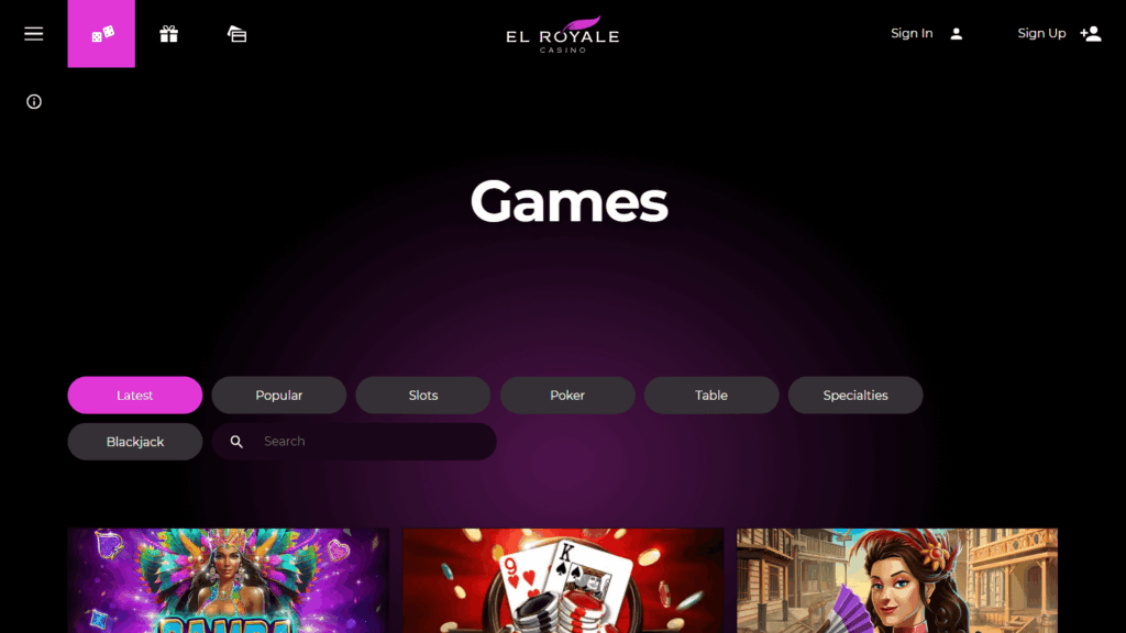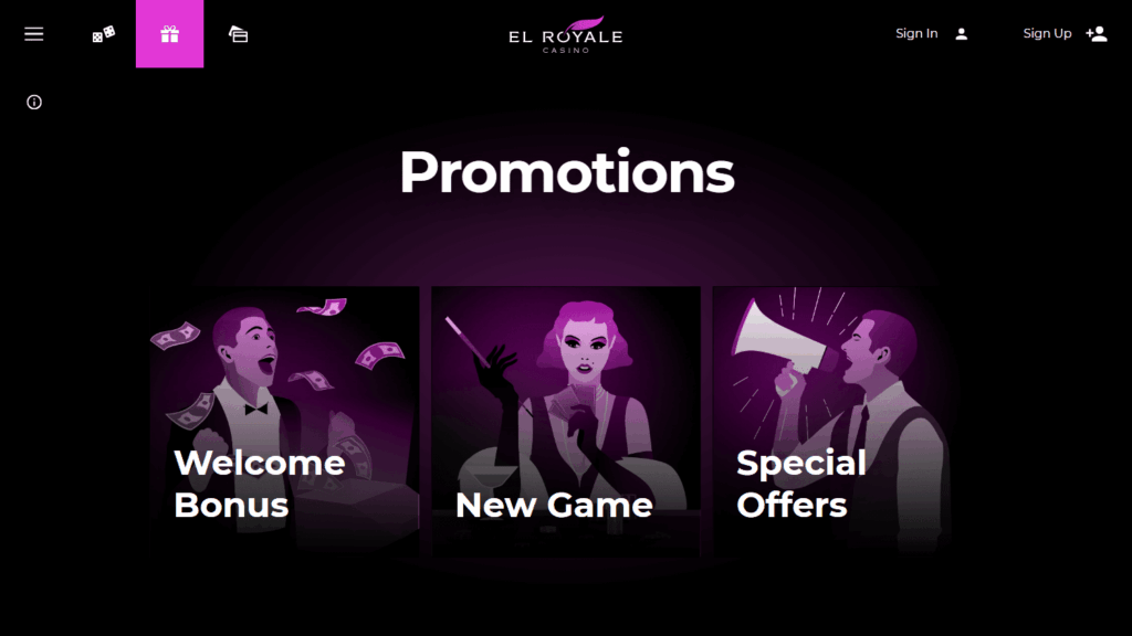 El Royale – онлайн-казино, ориентированное на поклонников классических игр, широкий выбор слотов и современные способы пополнения депозита. Наибольшее внимание здесь уделяется поддержке криптовалют, круглосуточному чату и программе лояльности, а также бонусам для новых и постоянных игроков.