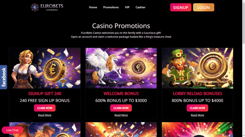 EuroBets выделяется наличием программы лояльности с еженедельным кэшбэком и накопительной системой бонусных баллов. Новые игроки получают приветственный пакет и стартовые поощрения, но условия по отыгрышу бонусов крайне жесткие. Игра на минимальном риске при использовании бонусных средств считается нарушением, что позволяет площадке отказать в выплате.