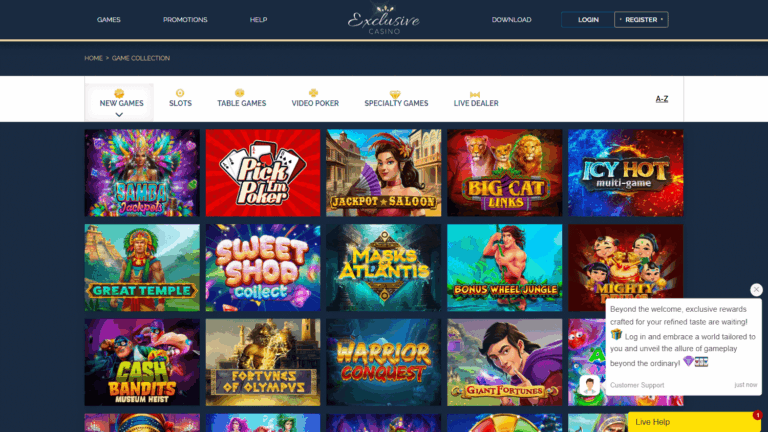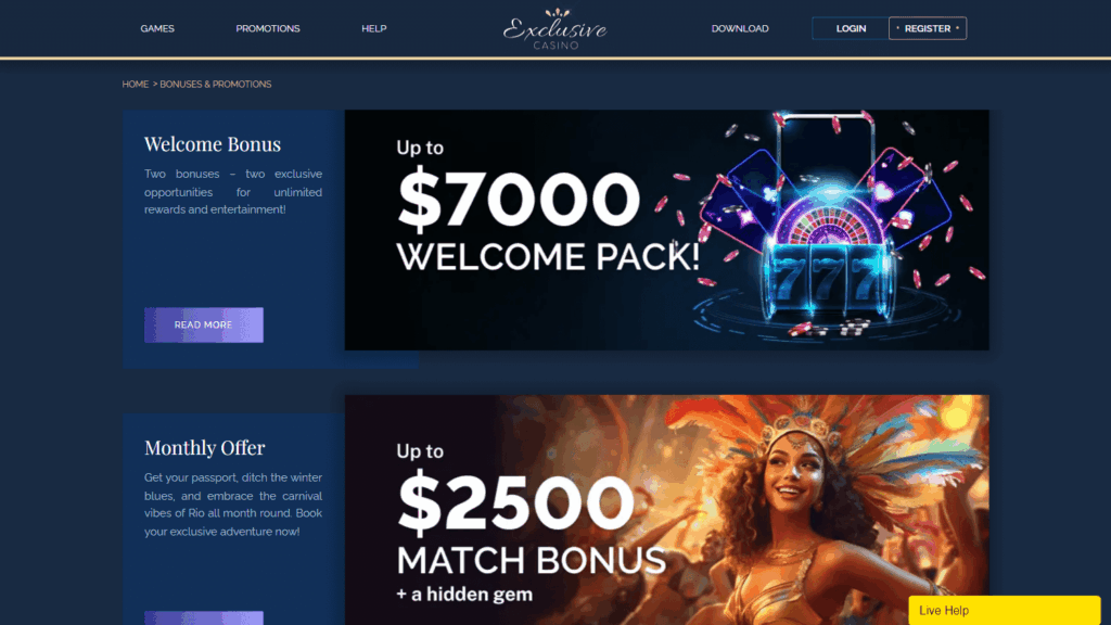 Exclusive Casino – онлайн-казино среднего размера без лицензии, популярное среди игроков из США, с ориентацией на безопасность денежных операций и разнообразие бонусных предложений.