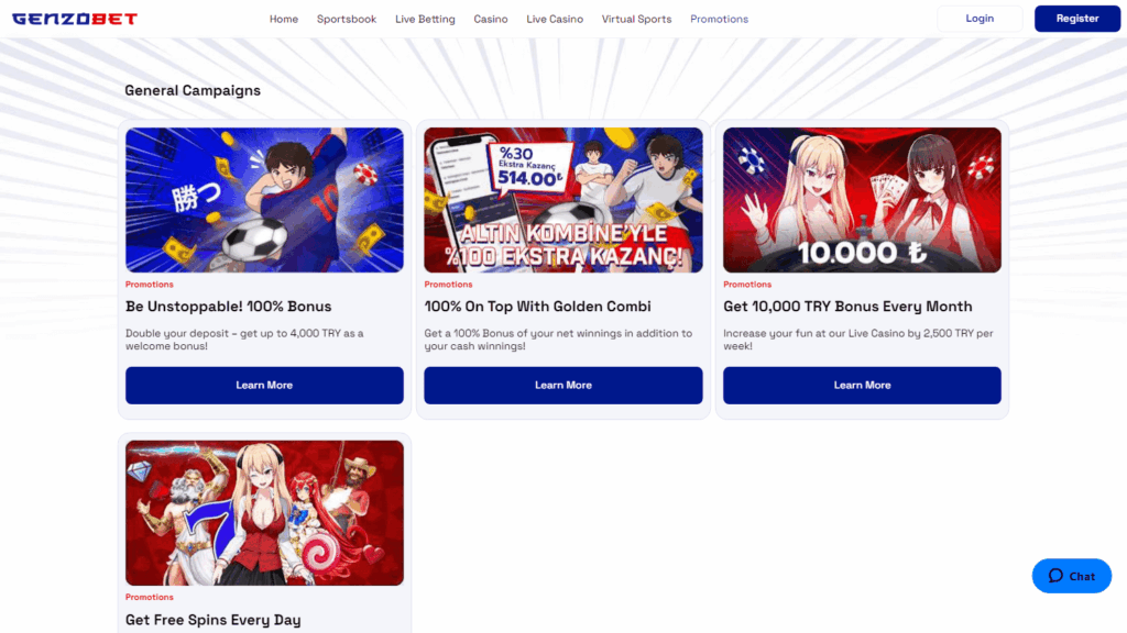 GenzoBet – онлайн-казино и букмекерская платформа, сочетающая широкий ассортимент игр, быстрые криптовалютные платежи и фокус на турецких игроков. Компания предлагает функционал для ставок на спорт и казино-развлечений в рамках одной учетной записи, что удобно для пользователей, предпочитающих комплексный подход к азартным играм.