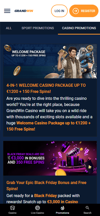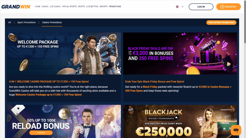 GrandWin предлагает более 3000 игр от 79 ведущих провайдеров, включая NetEnt, Evolution Gaming, Play’n GO, Yggdrasil и Pragmatic Play. Здесь представлены слоты, настольные игры, видеопокер, кено, скретч-карты, live-казино и ставки на виртуальный спорт. Запуск игр возможен с большинства мобильных устройств без установки дополнительного ПО. Портал поддерживает английский, немецкий, французский, испанский и ряд других языков, однако для отдельных разделов встречается непереведённый контент.