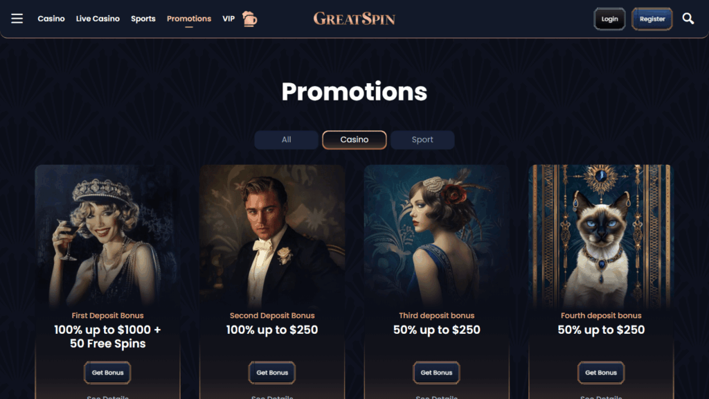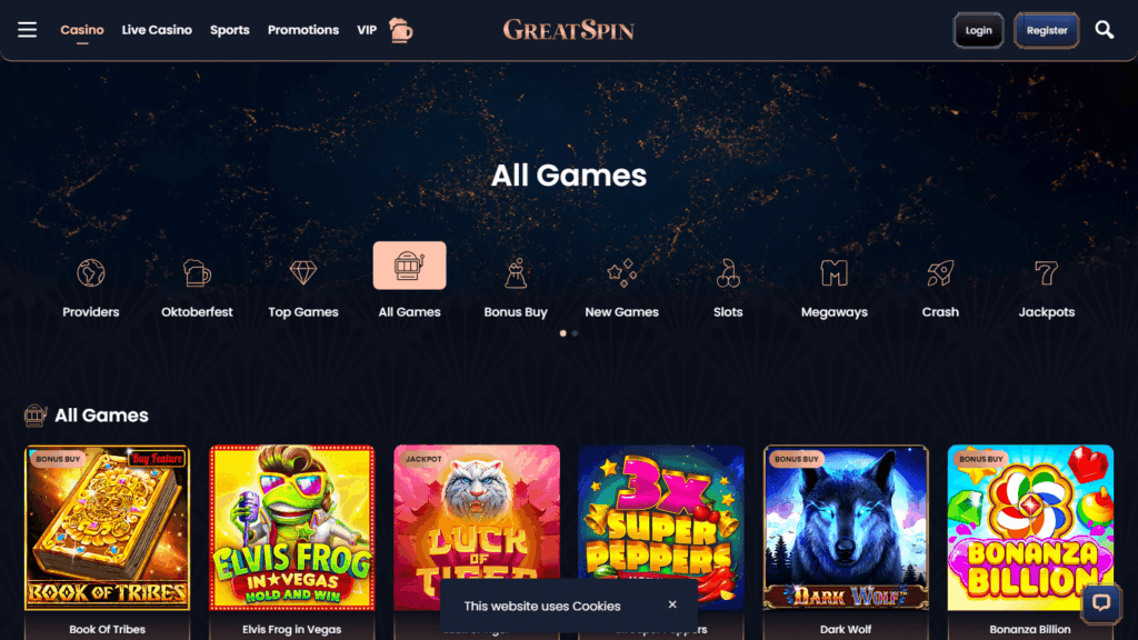 GreatSpin привлекает игроков широким выбором слотов и настольных игр от 149 провайдеров, включая NetEnt, Pragmatic Play, Evolution Gaming и многие другие известные студии. Отдельно стоит выделить наличие лайв-казино с дилерами, турниров, эксклюзивных промоакций и обширной программы лояльности для постоянных пользователей. Платформа поддерживает спортивные ставки, многочисленные бонусы для новичков и регулярные акции, в том числе миссии и турниры на автоматах.