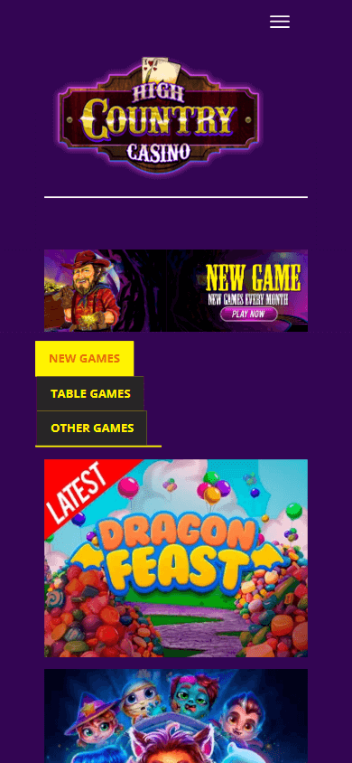 Ассортимент High Country Casino включает слоты, рулетку, блэкджек, видеопокер, баккару и лайв-игры, но выбор ограничен играми от трех провайдеров – Realtime Gaming, Visionary iGaming, SpinLogic Gaming. Как плюс – представлены популярные прогрессивные джекпоты и отдельные предложения для любителей блэкджека и покера, включая match бонус, добавочные спины и программы возврата средств (cashback). Лояльная программа позволяет обменивать накопленные баллы на призы и дополнительные бонусы, также доступна реферальная система.
