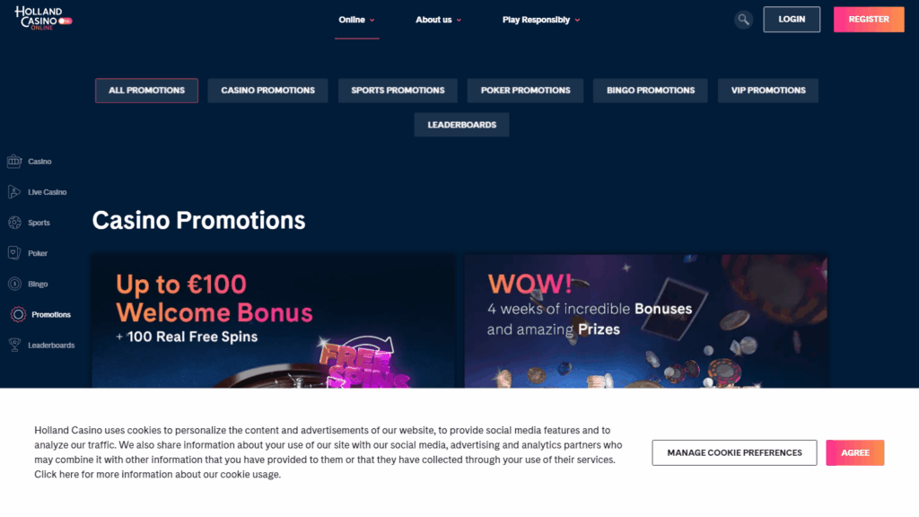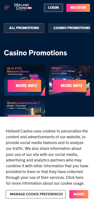 Holland Casino – онлайн-казино, нацеленное на игроков из Нидерландов, с официальной лицензией и поддержкой сети наземных заведений, что гарантирует высокий уровень надёжности и защищённости пользователей. Собственный покер-рум, множество игр и простая навигация делают площадку интересной для широкого круга игроков.